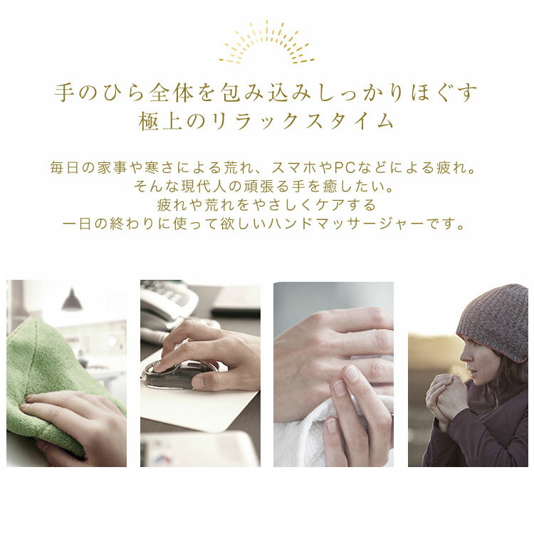 疲れや荒れをやさしくケアする 一日の終わりに使って欲しいハンドマッサージャーです。